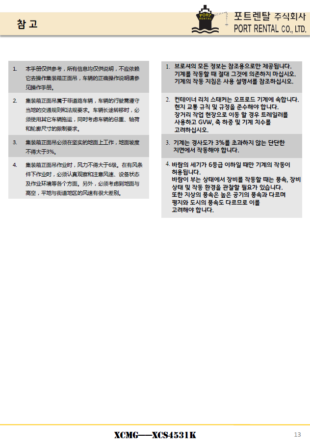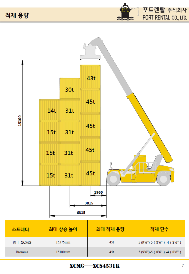 45톤 풀리치스태커 판매(XCMG:중국)