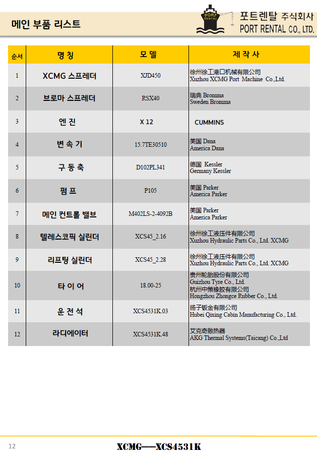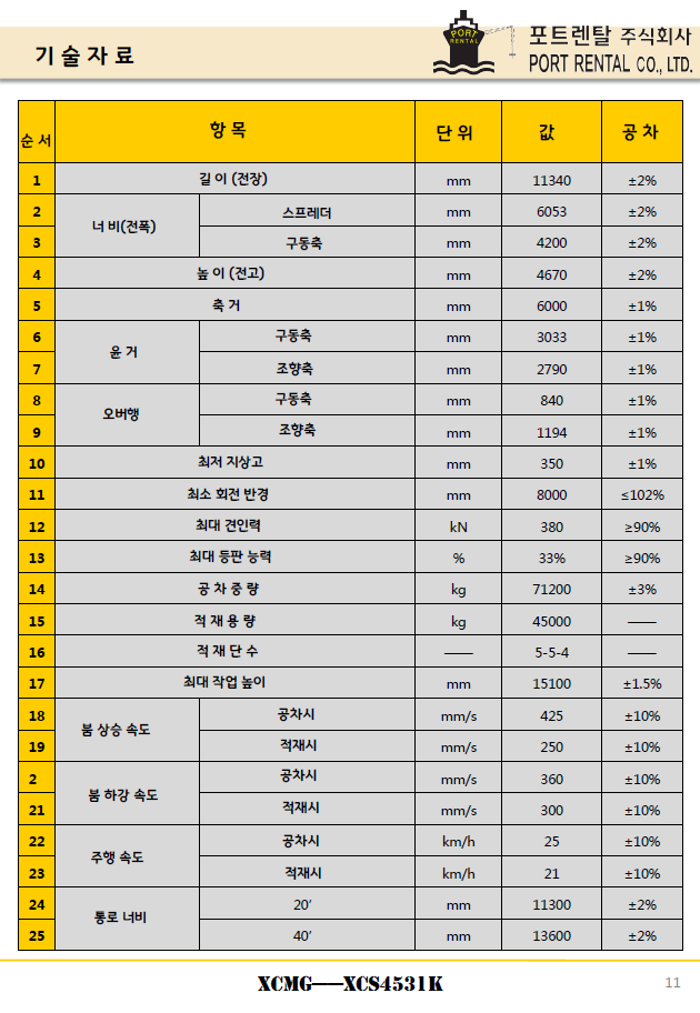 항만하역물류장비/엑슬